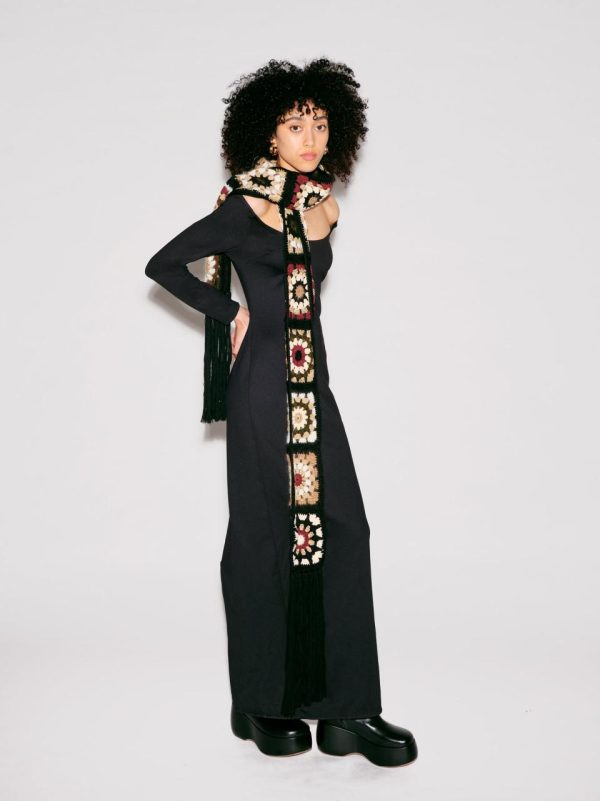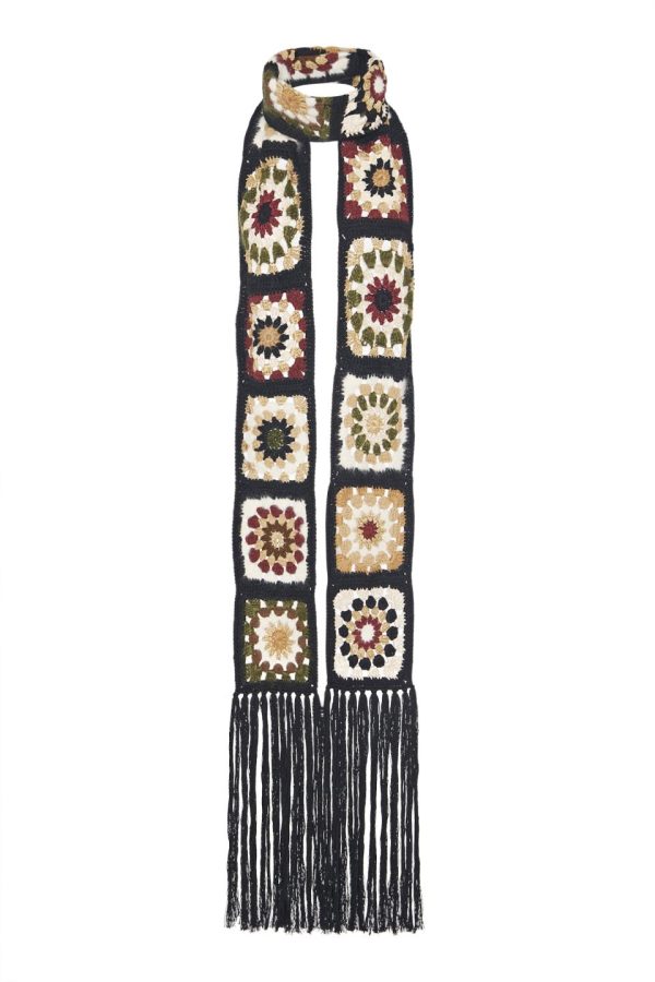Rosetta Getty’s Granny Squares Scarf encapsulates the bohemian sensibility of the 1970s. Designed and handcrafted to an artisanal finish, the soft wool-trimmed scarf features mixed fabrics for a luxe, varied texture with subtle metallic detailing.