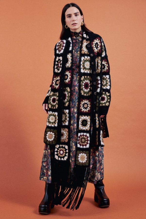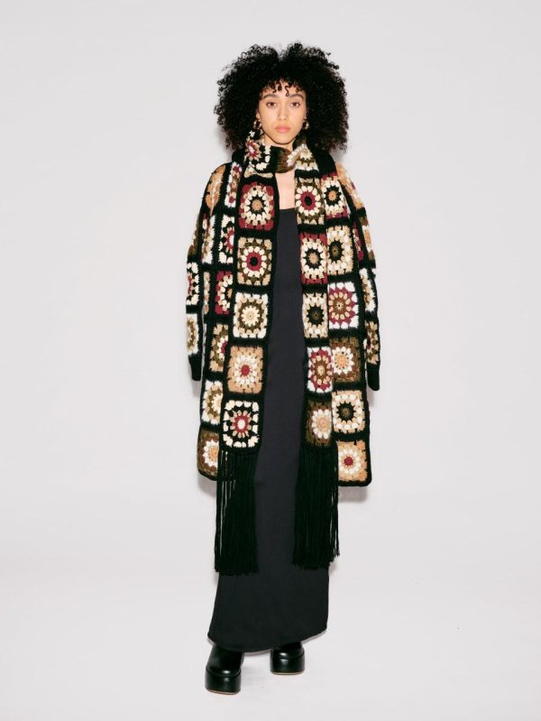 Crocheted by hand locally in Brooklyn, Rosetta Getty’s Granny Square styles have a timeless feel. Using a variety of yarns creates dimension with texture and tone, each framed in black for a uniform finish.