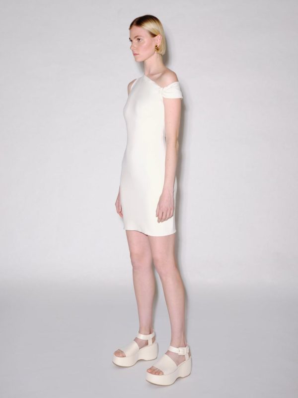 Our favorite alternative to brand staple Interlock Jersey, Rosetta Getty’s Scuba Doubleknit is our go-to for fitted silhouettes. Cut for Pre Fall 23 into a mini length, this sexy dress has an asymmetric neckline with a twisted detail for dimension and darts for shape.