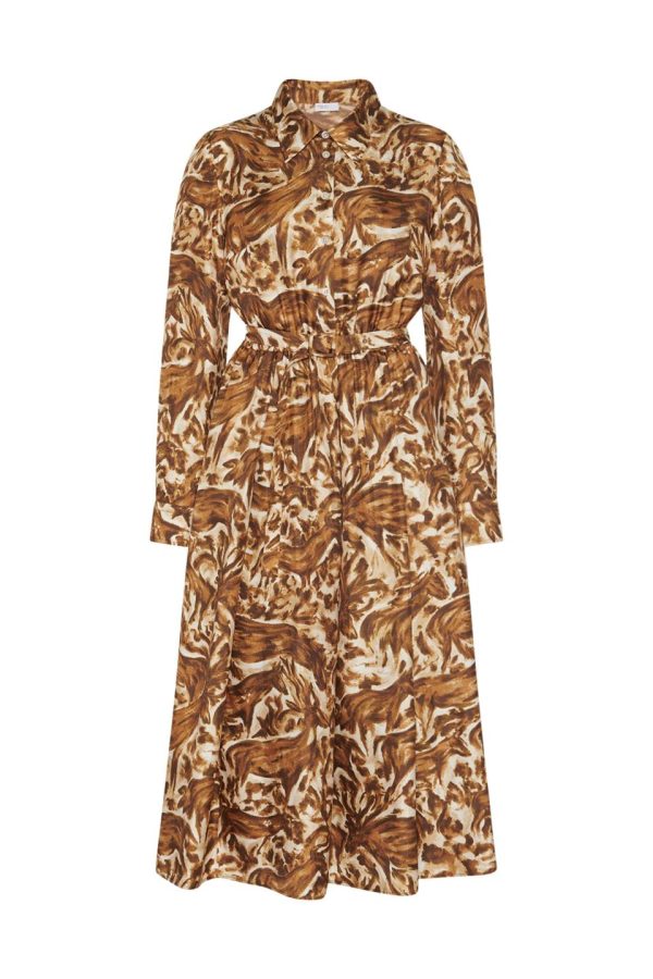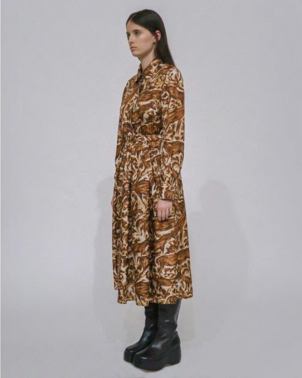 Cut with classic styling, the Pleated Shirtdress updates the timeless silhouette with a pleated, belted waistband. Crafted of soft silk twill, Fall 24’s Abstract Horses print imparts a sense of style and movement.