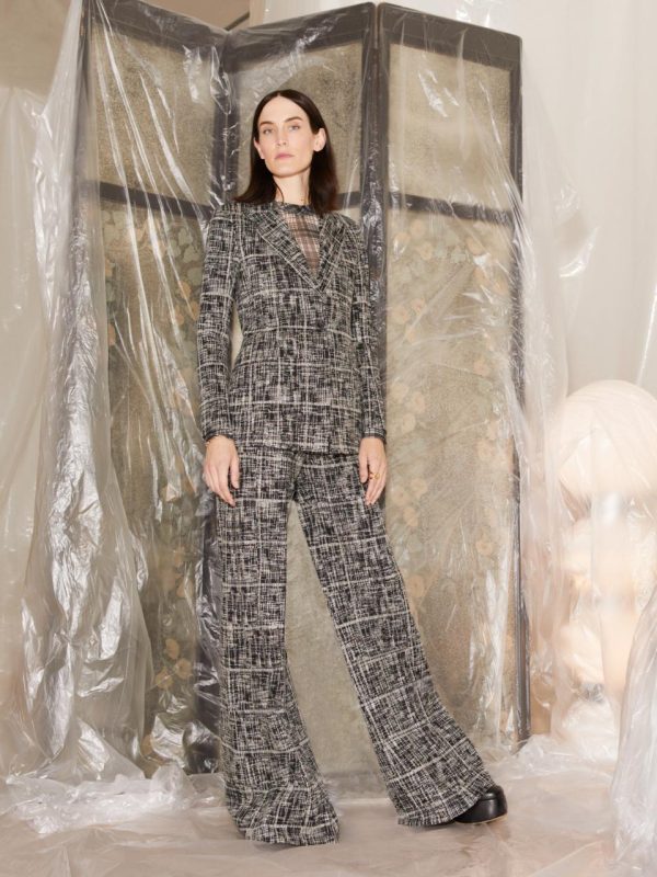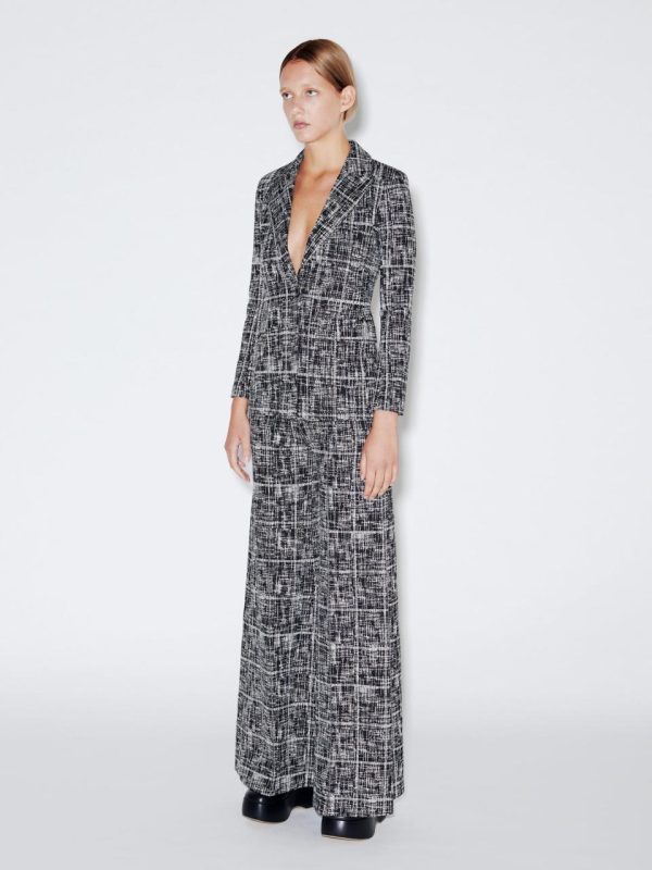 An exclusive fabrication for the season, the Etched Plaid Interlock Jacquard is similar to our Interlock Jersey with a slightly slick hand and added elastic to contour the body. It’s produced by an Italian mill certified for its sustainable practices by the Associazione Tessile e Salute (Health and Textiles Association) and Forest Stewardship Council (FSC), which uses viscose produced using sustainably sourced and certified FSC wood pulp.