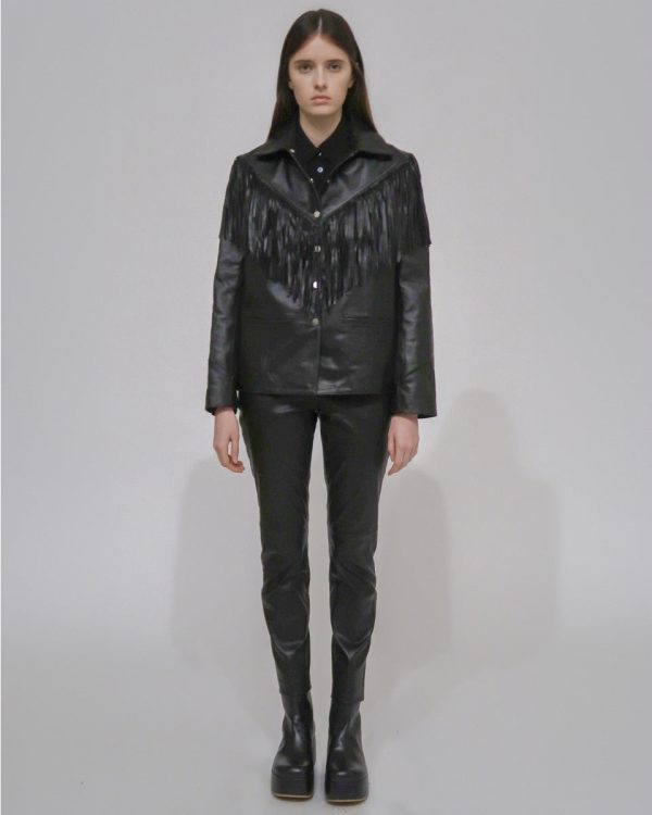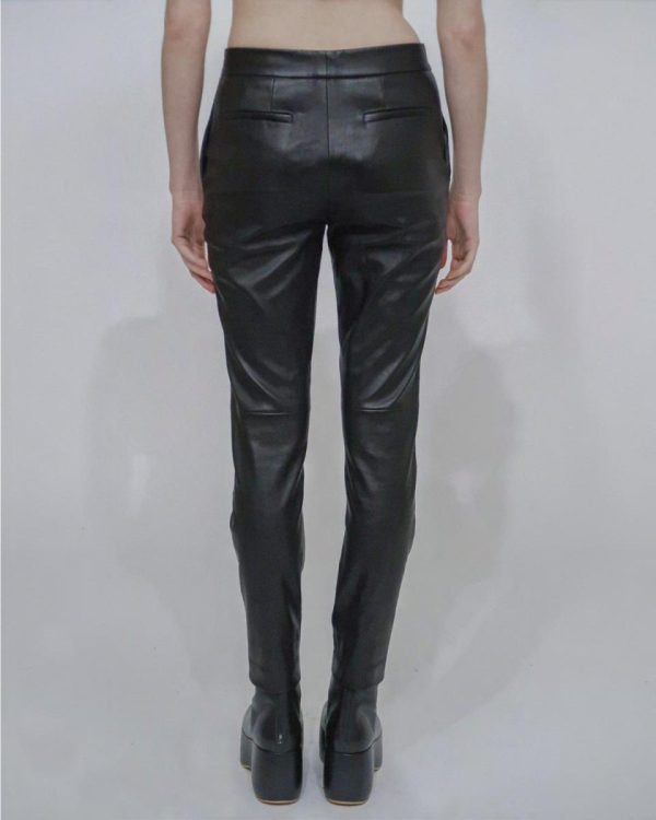 A true wardrobe workhorse, the Cropped Skinny Pant is truly an essential: cut in signature Stretch Plongé, the mid-rise pant features a close fit with seam at each knee, allowing movement. The soft leather features a stretch cotton base, imparting enduring wearability to the style.
