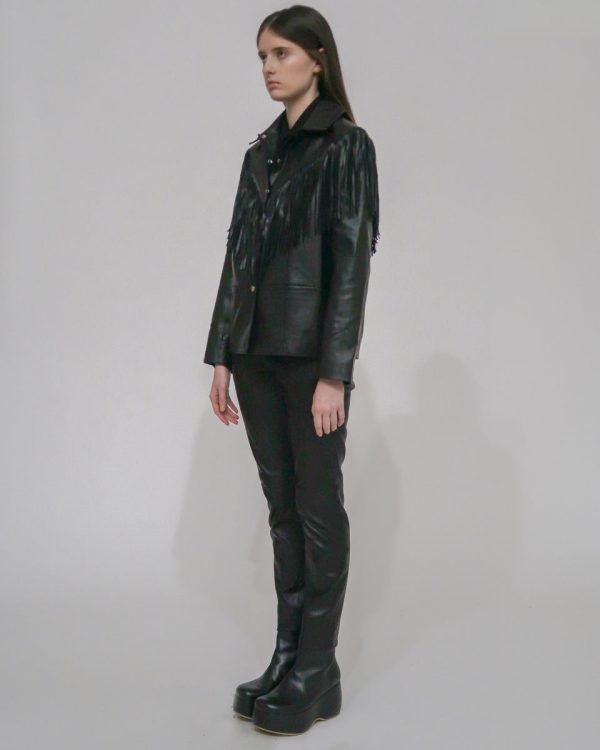 The center point of Rosetta Getty’s popular leather offering, this Stretch Plongé fabric pairs buttery-soft lambskin with a stretch cotton backing for a leisurely feel. Tanned in France, it has a sexy, slightly shiny finish while maintaining a substantial feel for structure and shape.