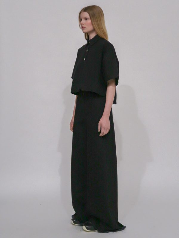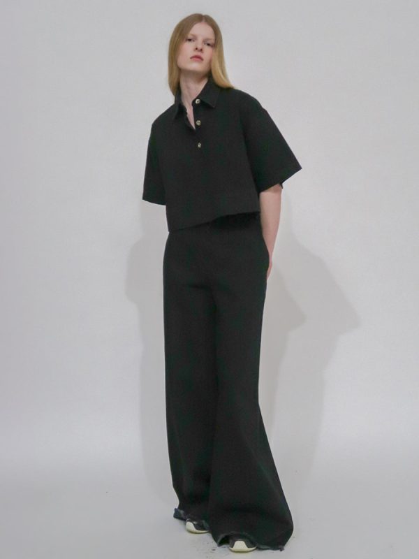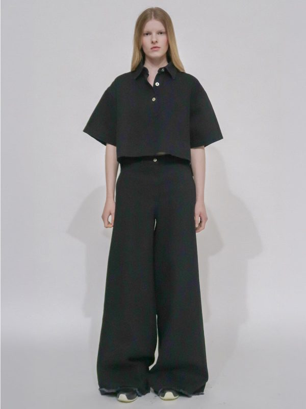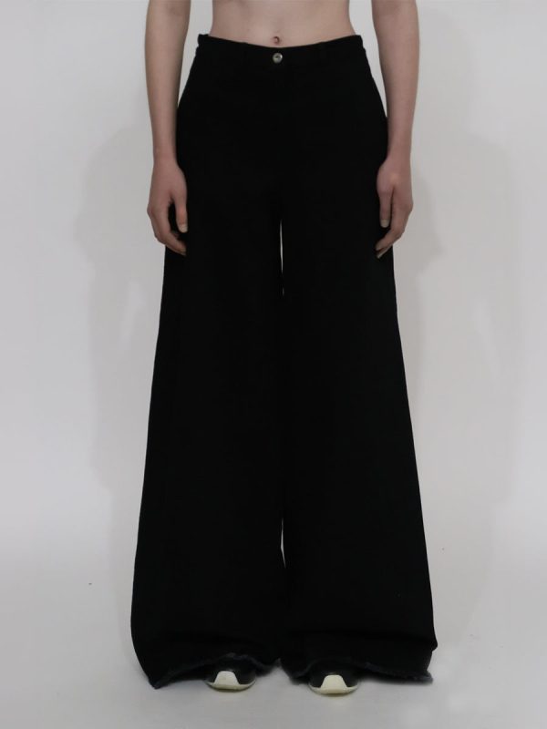 Cut with a super wide leg, our pant silhouette from Fall 23 returns for Pre-Fall 24 in new Rinse Wash Denim. The inky black denim complements the oversized flare shape, lending a ‘90s-style casual-cool feel to the overall look.