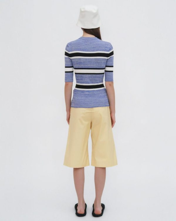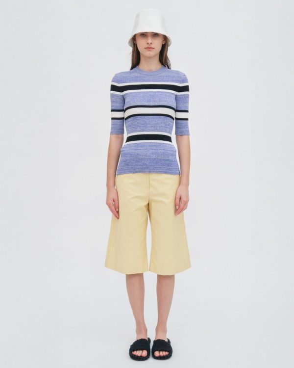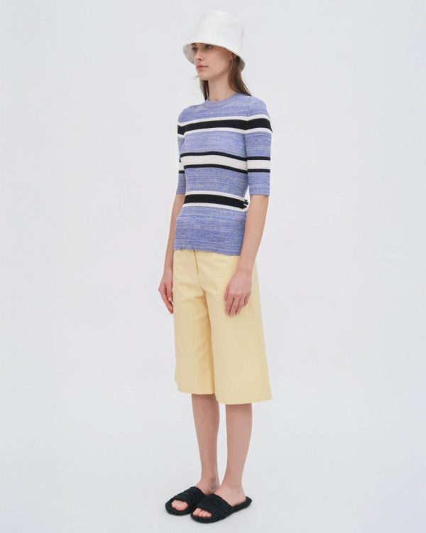 Rosetta Getty Sweaters | Women STRIPED CROPPED SLEEVE SWEATER Blue Melange