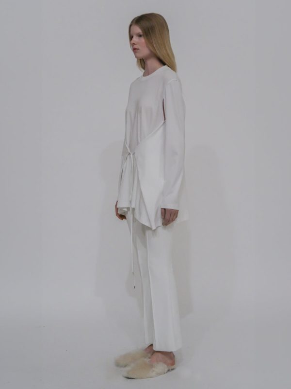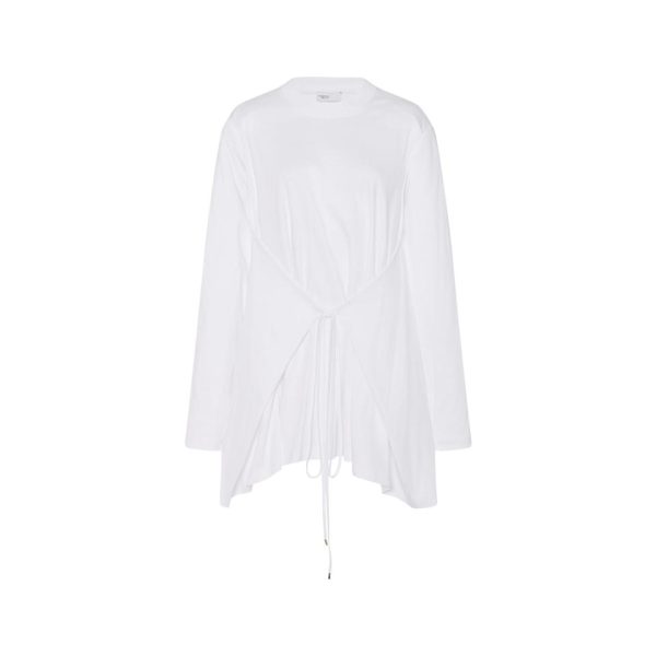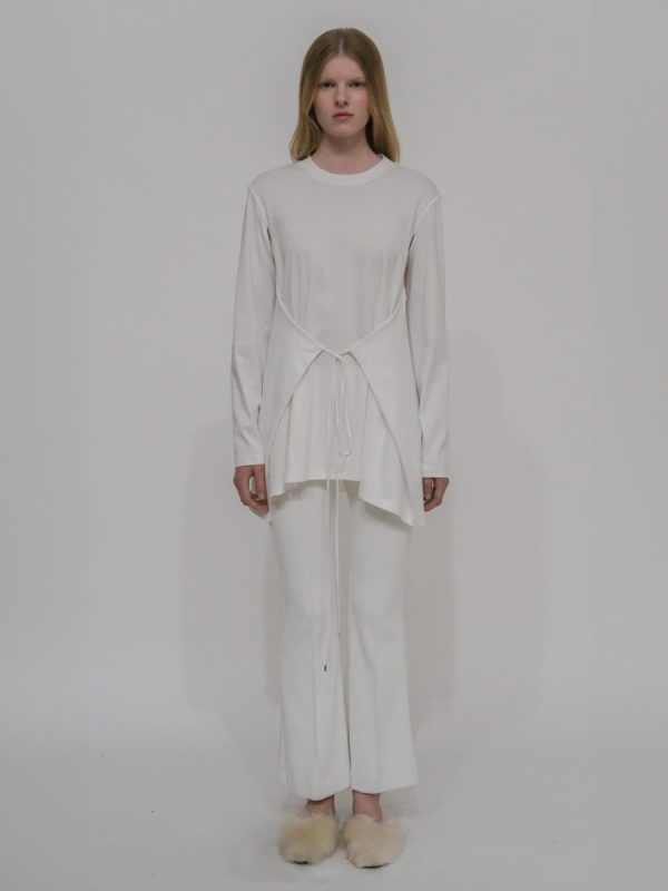 A stylish iteration of a long-sleeve tee, the Apron Cutout T-Shirt features a wrap-front apron with a tie that can be used to cinch the waist—or it can be left open for a more laidback silhouette. Cutouts at the underarms allow for further versatility, offering wear as generic sleeves or open for a cape-like feel.