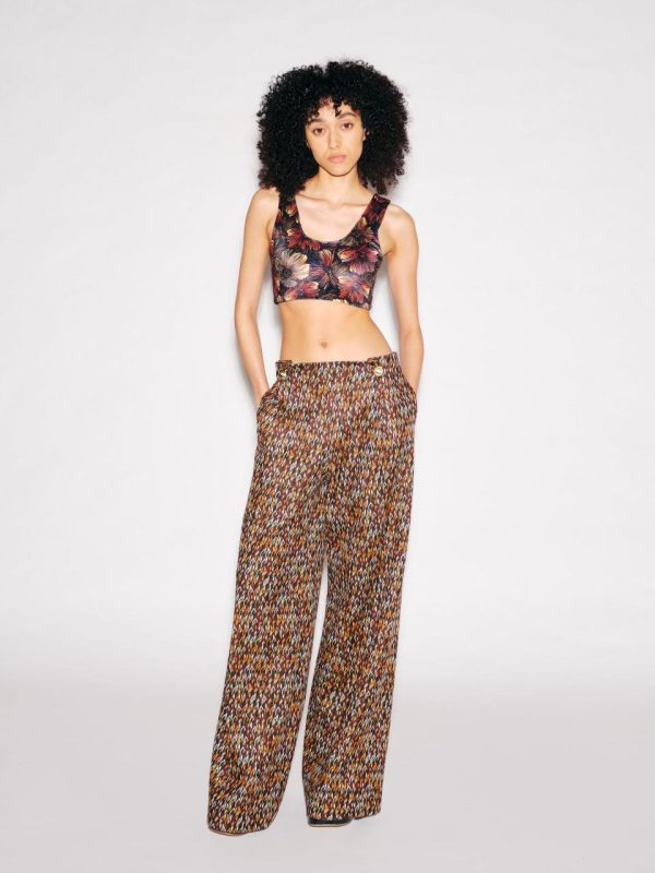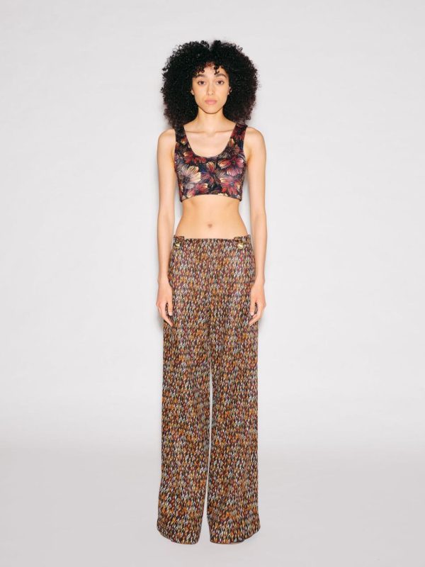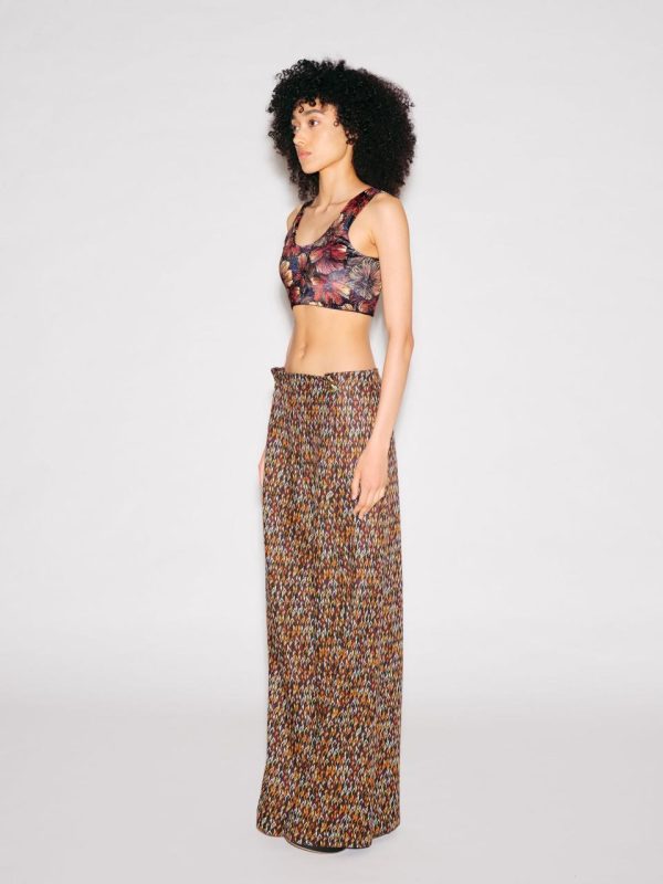 Reminiscent of a sports bra, our versatile cropped tank top features front and back scoop necklines to flatter the silhouette. Crafted of seasonal Abstract Painted Velvet, the minimalist style has a maximalist finish that is perfect for layering beneath more subdued pieces.