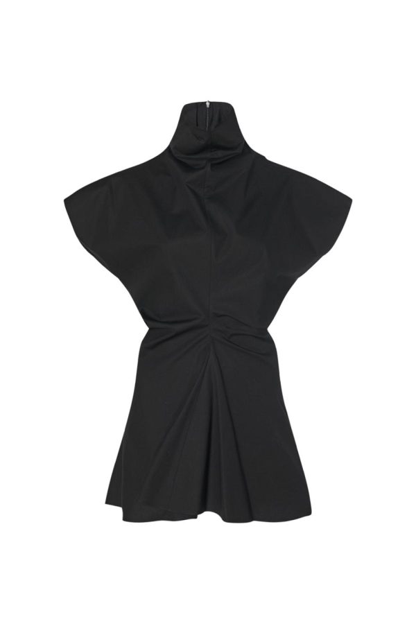 Thoughtful draping shapes Rosetta Getty’s Funnelneck Torqued Top, cut in smooth Stretch Cotton Poplin to highlight its contours. A scrunched funnel neckline tops the silhouette, evolving into a cape-like bodice and torqued waist.
